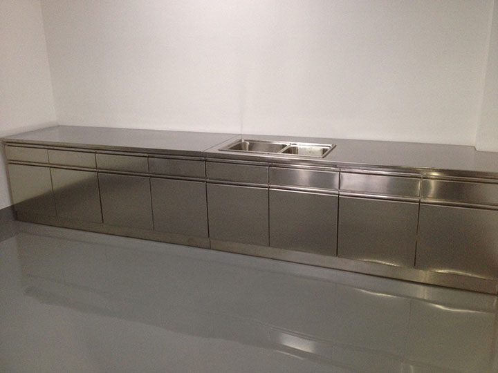 1.材料:臺面采用1mm厚316/304不銹鋼板(可選),加基材厚度達到20mm,防水、耐高溫耐磨、耐抗擊、不變形、無毒、易清潔、并具有良好的承重性能。