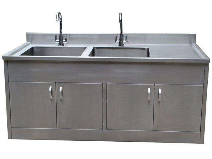 2.加工工藝:臺面板內(nèi)側(cè)增加100mm不銹鋼擋板,臺面下緣底部并加工止水溝防止積水滴入柜體內(nèi)。